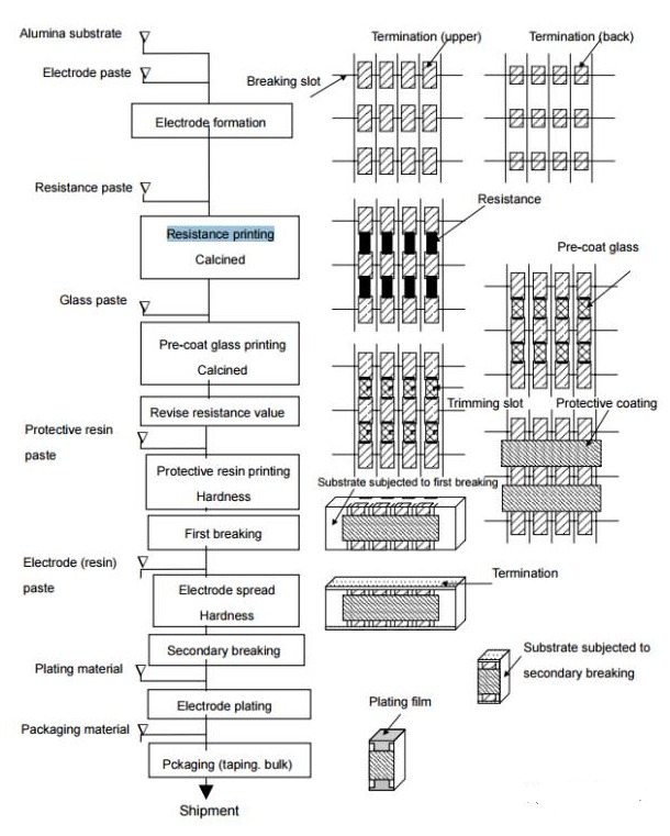 | 電阻的工藝種類繁多,可以根據阻值是否可以變化,分成兩大類介紹:固定電阻、可變電阻 1.1 電源適配器固定電阻 固定電阻,顧名思義就是電阻值是定值,不可變。大多數時候,我們使用的電阻都是固定值的。可以根據封裝的不同大致再分類 1.1.1 電源適配器軸向引線電阻(Axial Leaded Resistor) 軸線引線電阻通常都是圓柱形,兩個外電極是圓柱體兩端的軸向導線,根據材料和工藝的不同還可以再分為多種。 電源適配器繞線電阻(Wire Wound Resistor) ![]() 繞線電阻是將鎳鉻合金導線繞在氧化鋁陶瓷基底上,一圈一圈控制電阻大小。繞線電阻可以制作為精密電阻,容差可以到0.005%,同時溫度系數非常低,缺點是繞線電阻的寄生電感比較大,不能用于高頻。繞線電阻的體積可以做的很大,然后加外部散熱器,可以用作大功率電阻。 6w電源適配器碳合成電阻(Carbon Composition Resistor) ![]() 碳合成電阻主要是由碳粉末和粘合劑一起燒結成圓柱型的電阻體,其中碳粉末的濃度決定了電阻值的大小,在兩端加鍍錫銅引線,較后封裝成型。碳合成電阻工藝簡單,原材料也容易獲得,所以價格較便宜。但是碳合成電阻的性能不太好,容差比較大(也就是做不了精密電阻),溫度特性不好,通常噪聲比較大。碳合成電阻耐壓性能較好,由于內部是可以看作是碳棒,基本不會被擊穿導致被燒毀。 電源適配器碳膜電阻(Carbon Film Resistor) ![]() 碳膜電阻主要是在陶瓷棒上形成一層碳混合物膜,例如直接涂一層,碳膜的厚度和其中碳濃度可以控制電阻的大小;為了更加精確的控制電阻,可以在碳膜上加工出螺旋溝槽,螺旋越多電阻越大;較后加金屬引線,樹脂封裝成型。碳膜電阻的工藝更加復雜一點,可以做精密電阻,但由于碳質的原因,還是溫度特性不太好。 6w電源適配器金屬膜電阻(Metal Film Resistor) ![]() 與碳膜電阻結構類似,金屬膜電阻主要是利用真空沉積技術在陶瓷棒上形成一層鎳鉻合金鍍膜,然后在鍍膜上加工出螺旋溝槽來精確控制電阻。金屬膜電阻可以說是性能比較好的電阻,精度高,可以做E192系列,然后溫度特性好,噪聲低,更加穩定。 金屬氧化物膜電阻(Metal Oxide Film Resistor) 與金屬膜電阻結構類似,金屬氧化物膜主要是在陶瓷棒形成一層錫氧化物膜,為了增加電阻,可以在錫氧化物膜上加一層銻氧化物膜,然后在氧化物膜上加工出螺旋溝槽來精確控制電阻。金屬氧化物膜電阻較大的優勢就是耐高溫。 1.1.2 電源適配器片狀電阻 金屬箔電阻(Metal Foil Resistor) ![]() 金屬箔電阻是通過真空熔煉形成鎳鉻合金,然后通過滾碾的方式制作成金屬箔,再將金屬箔黏合在氧化鋁陶瓷基底上,再通過光刻工藝來控制金屬箔的形狀,從而控制電阻。金屬箔電阻是目前性能可以控制到較好的電阻。 厚膜電阻(Thick Film Resistor) ![]() 厚膜電阻采用的絲網印刷法,就是再陶瓷基底上貼一層鈀化銀電極,然后在電極之間印刷一層二氧化釕作為電阻體。厚膜電阻的電阻膜通常比較厚,大約100微米。具體工藝流程如下圖所示。 ![]() 厚膜電阻是目前應用較多的電阻,價格便宜,容差有5%和1%,絕大多數產品中使用的都是5%和1%的片狀厚膜電阻。 電源適配器薄膜電阻(Thin Film Resistor) 薄膜電阻就是氧化鋁陶瓷基底上通過真空沉積形成鎳化鉻薄膜,通常只有0.1um厚,只有厚膜電阻的千分之一,然后通過光刻工藝將薄膜蝕刻成一定的形狀。Thin Film工藝在此前電容和電感的文章中已經提到過多次了,光刻工藝十分精確,可以形成復雜的形狀,因此,薄膜電容的性能可以控制的很好。