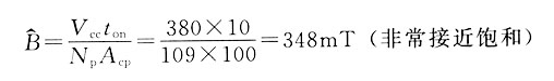手機充電器在正常工作條件下,5V輸出所需的脈寬小于較大值50%。因此變壓器正常工作于較小的磁通偏移,磁心損耗是優化的。 在暫態條件下可出現較大磁通條件。考慮系統工作于較大充電器輸入和較小負載。輸入電壓Va大約是380V。如果輸出突然加上負載,輸出扼流圈L:中的電流不能立刻變化,輸出電壓將降低。由于控制放大器設計成能給出較大暫態響應,它將脈沖寬度快速調整到較大(本例為50%或10us)。 加在變壓器原邊的伏秒現在為較大,較大磁通密度條件將出現數個周期,其值計算如下: