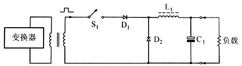 圖中的開關與所加的功率脈沖同步工作以進一步減小加在輸出濾波器L1、C1上的脈沖寬度。減小脈沖寬度有兩種方法:一種是提前關斷功率脈沖,因此移動的是功率脈沖的后沿;另一種方法是延時接通功率脈沖,因此移動的是功率脈沖的前沿。這兩種方法都減小了加在輸出濾波器上的有效脈寬,通過對該開關進行動態控制,可以在低輸出電壓下調節輸出。