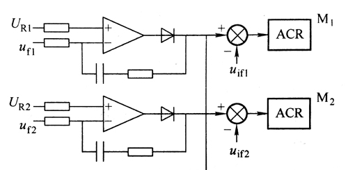 因此必須使系統(tǒng)能自動(dòng)選主,基本思想還是通過(guò)均流母線進(jìn)行仲裁,具體電路見(jiàn)圖? 在自動(dòng)選主的主從均流方式中,各電源適配器的電壓調(diào)節(jié)器都處于工作狀態(tài),其輸出通過(guò)均流母線仲裁出較大值?這樣輸出值較高的調(diào)節(jié)器就成了主調(diào)節(jié)器,其他調(diào)節(jié)器處于跟隨狀態(tài)?同時(shí)均流 母線還給各電源適配器傳遞了電流給定信號(hào)?因此,在該均流方式下,均流母線具有雙重作用。 自動(dòng)選主的主從均流方式保持了均流精度高和穩(wěn)壓精度高的優(yōu)點(diǎn),而且在主電源適配器失效后,剩余的電源適配器能自動(dòng)仲裁出新的主電源適配器,不影響系統(tǒng)正常工作。