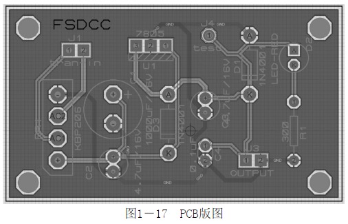 | 使用三端穩(wěn)壓器有以下優(yōu)點(diǎn)。 (1)元件數(shù)量少。 (2)帶有限流電路,輸出短路時(shí)不會(huì)損壞元件。 (3)帶有熱擊穿功能。 三端穩(wěn)壓器選擇7805(輸出電壓為+5V,較大輸出電流為1A,且穩(wěn)壓器內(nèi)部已有限流電路),在輸出端并入二極管D1(型號(hào)為1N4001),當(dāng)三端穩(wěn)壓器未接入輸入電壓時(shí)可保護(hù)其不至于損壞。 圖所示為穩(wěn)壓電路仿真結(jié)果,可見由穩(wěn)壓器輸出端VO經(jīng)濾波輸出+4.94V穩(wěn)定直流電壓。 ![]() 三端穩(wěn)壓器較易損壞的是輸出腳(圖中3腳)電壓高于輸入腳(圖中1腳)而形成擊穿,因此一般像圖中D3那樣并聯(lián)一個(gè)二極管1N4001,它的主要作用是:如果輸入端C1或C2出現(xiàn)短路,則輸出3腳會(huì)高于輸入1腳 ,很容易擊穿穩(wěn)壓器,所以反向并聯(lián)一個(gè)二極管,對(duì)2腳電壓進(jìn)行泄放,使3腳到1腳電壓限幅為0.7V,可有效保護(hù)穩(wěn)壓器不被反向擊穿。 穩(wěn)壓電路空載輸出如圖所示。 在穩(wěn)壓輸出out3端接入300Ω電阻與LED負(fù)載進(jìn)行穩(wěn)壓測(cè)試,如圖所示。 加入300Ω電阻與LED負(fù)載后,由穩(wěn)壓器輸出的直流電壓大小為4.93V,并可將LED點(diǎn)亮。用示波器監(jiān)視穩(wěn)壓電路輸出VO,結(jié)果如圖所示。 ![]() 隨后在穩(wěn)壓器輸出端VO處加入2kΩ電阻與LED負(fù)載,仿真結(jié)果如圖所示。 ![]() 加入2kΩ電阻與LED負(fù)載后,由穩(wěn)壓器輸出的直流電壓大小為4.92V,并可將LED點(diǎn)亮,如圖所示。 ![]() 綜上所述,本項(xiàng)目所設(shè)計(jì)的固定式直流穩(wěn)壓電源適配器,能夠在負(fù)載變化的情況下提供穩(wěn)定的+5V直流穩(wěn)壓電源適配器。固定式單電源適配器直流穩(wěn)壓電路整體電路原理圖如圖所示。 ![]() 經(jīng)過對(duì)電路板的實(shí)際測(cè)試,測(cè)試結(jié)果顯示輸出電壓為5.0V,設(shè)計(jì)要求單電源適配器輸出5V電壓,實(shí)測(cè)符合設(shè)計(jì)要求。 PCB版圖(見圖) ![]() 實(shí)物測(cè)試(見圖) 總結(jié) 為了提高電子設(shè)備的精度及穩(wěn)定性,在直流電源適配器中還要加入穩(wěn)壓電路,因此稱為直流穩(wěn)壓65W電源適配器。典型的直流穩(wěn)壓電源適配器主要由電源適配器變壓器、整流電路、濾波電路和穩(wěn)壓電路等幾部分構(gòu)成。電源適配器變壓器把50Hz的交 流電網(wǎng)電壓變成所需要的交流電壓;整流電路用來將交流電變換為單向脈動(dòng)直流電;濾波電路用來濾除整流后單向脈動(dòng)電流中的交流成分(即紋波電壓),使其成為平滑的直流電。本項(xiàng)目所介紹的穩(wěn)壓電路測(cè) 試顯示輸出電壓為5.0V,設(shè)計(jì)要求單電源適配器輸出5V電壓,實(shí)測(cè)符合設(shè)計(jì)要求。