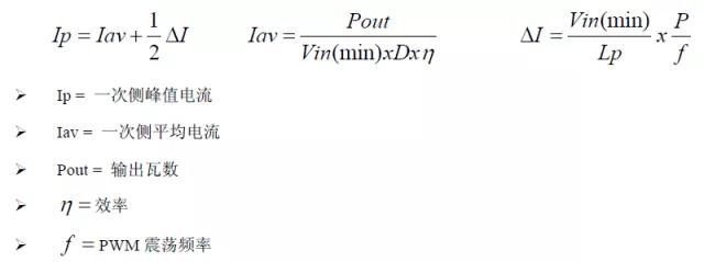 6)決定輔助電源適配器的圈數: 依據變壓器的圈比關系,可決定輔助電源適配器的圈數及電壓。 7)決定MOSFET及二次側二極管的Stress(應力): 依據變壓器的圈比關系,可以初步計算出變壓器的應力(Stress)是否符合選用零件的規格,計算時以輸入電壓264V(電容器上為380V)為基準。 注:若輸出電壓為5V以下,且必須使用TL431而非TL432時,須考慮多一組繞組提供Photo coupler及TL431使用。 將所得資料代入: