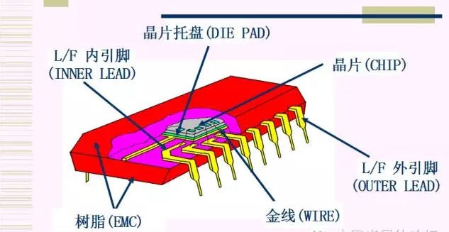 其成品(封裝體)主要是提供一個引接的接口,內(nèi)部電性訊號可通過引腳將芯片連接到系統(tǒng),并避免硅芯片受外力與水、濕氣、化學物之破壞與腐蝕等。