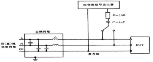 a)信號(hào)發(fā)生器的特性應(yīng)盡可能地模擬開關(guān)瞬態(tài)和雷擊瞬態(tài)現(xiàn)象; b)如果干擾源與受試設(shè)備的端口在同一線路中,例如在電源網(wǎng)絡(luò)中(直接耦合),那么信號(hào)發(fā)生器在受試設(shè)備的端口能夠模擬一個(gè)低阻抗源; c)如果干擾源與受試設(shè)備的端口不在同一線路中(間接耦合) ,那么信號(hào)發(fā)生器能夠模擬一個(gè)高阻抗源。 對(duì)于不同場(chǎng)合使用的產(chǎn)品及產(chǎn)品的不同端口,由于相應(yīng)的浪涌(沖擊)瞬態(tài)波形,各不相同,因此對(duì)應(yīng)的模擬信號(hào)發(fā)生器的參數(shù)也各不相同。