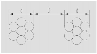 其中D為不同類電纜束間距,d為各類電纜束的綁扎后的外徑較大值,要求D>10d。