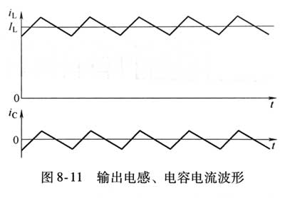 式中l(wèi)rms—輸出濾波電容器的有效值電流; Ip-p—峰-峰值電流; lo—輸出電流平均值? 可以得出當(dāng)負(fù)載電流在20%?10%額定電流時為電流臨界連續(xù)狀態(tài),則流過輸出濾波電容器的有效值電流為額定輸出電流的18.26%?9.13%?應(yīng)該說相對輸出電流而言,這個電流是比較小的,對輸出濾波電容器的影響并不很大? 如果是反激式電源適配器,情況將完全不同了,因為所有的輸出電流為電感(隔離型的為“變壓器”)提供,而電感電流的波動均需要輸出濾波電容器來濾除,如圖8-12所示?