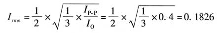 這時紋波電流的大小主要看輸出濾波電感對電流的平滑作用如何?如果輸出電流在20%負(fù)載仍能連續(xù)則輸出濾波電容器僅承擔(dān)輸出電流的40%峰峰值紋波電流,如紋波電流近似為三角波時,其有效值為