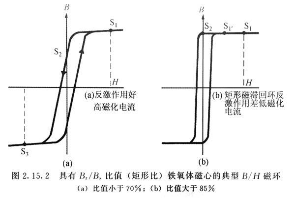 隨著原邊繞組兩邊的電壓降低,P2上的基極驅動電壓也降低,Q1將關斷。 由于B/H特性頂部限定的斜率(飽和后導磁率),從S1到S2變壓器中存在反激作用,因為dB/dt現在為負,所有繞組上的電壓將改變方向。這將進一步促使Q1關斷,Q2開始導通。 通過反饋作用,Q2導通,Q1關斷,工作周期在原邊另一半繞組中重復。磁心中的磁通從S2向S變化,又重復關斷作用。 注意:關斷作用的出現是由晶體管的電流增益限制引起的。由于集電極電流隨元件的類型和溫度而變化,所以這種限制作用并不是很精確。對于高增益晶體管,在受到增益限制之前就有較大的集電極電流流過。這使開關效率變差,并帶來EMI(電磁干擾)問題。還有,如果沒有仔細選擇正確的(低的)電流增益和額定值,在某些條件下,失去限制的集電極電流可能導致開關元件損壞。
