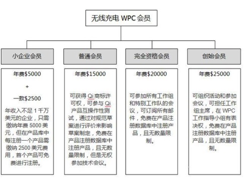 一款產品要申請qi認證,首先需要公司注冊成為WPC會員,繳納會員費,會員有小企業會員、普通會員、完全資格會員和創始會員,不同的會員繳納的會員費不同,獲得的權利也不同。
