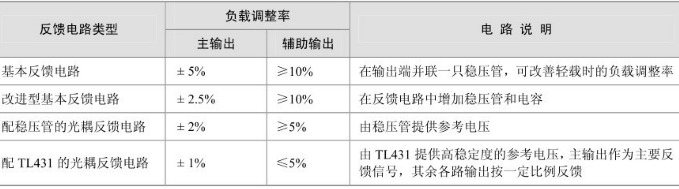 多路輸出的反饋電路有4種類型:基本反饋電路、改進型基本反饋電路、配穩壓管的光耦反饋電路和配TL431的光耦反饋電路。其中第四種電路的穩壓性能較好。利用表可選定反饋電路。