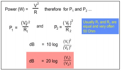 通過(guò)以下的推導(dǎo)可知電壓由分貝表示為(注意有一個(gè)前提條件為R1=R2):