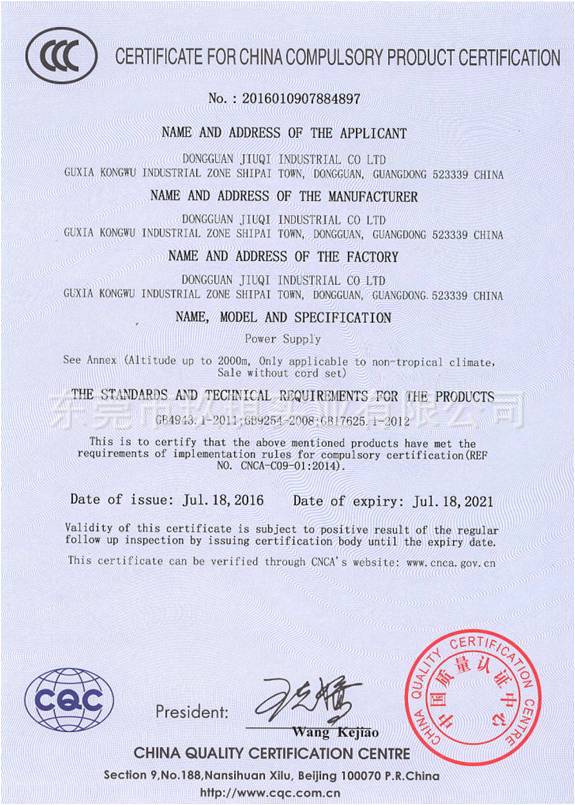 網站首頁 » 產品展示 » 產品認證 » 65W證書 » CCC安規證書-65W系列 電源適配器