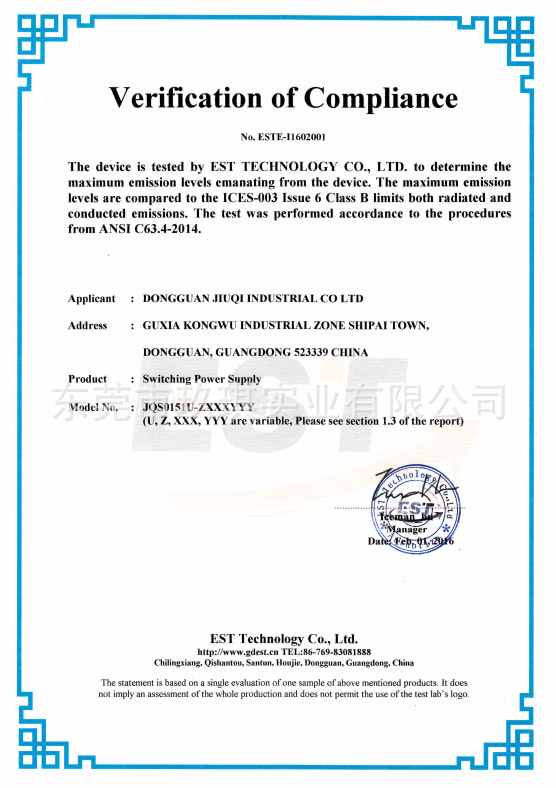 網(wǎng)站首頁 » 產(chǎn)品展示 » 產(chǎn)品認證 » 15W證書 » ICES-003安規(guī)證書-15W系列電源適配器