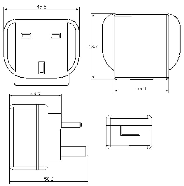 歐規(guī)/韓規(guī):43.7*36.4*60mm;